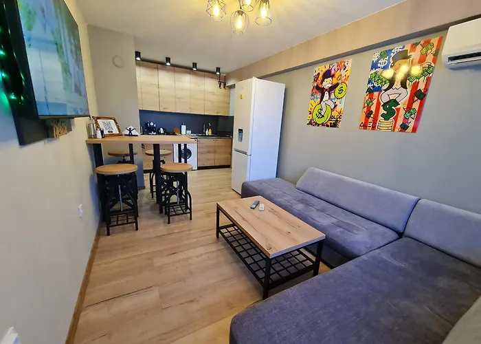 Monumentul prieteniei bulgaro-sovietice se află la 2.5 km distanță, iar Universitatea de Medicină Varna este la 400 de metri de la acest apartament de 90 m^2. Atracțiile din apropiere de acest apartament spațios includ Grădina Mării, aflat la doar 18 minute de mers pe jos.